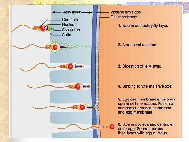 Fertilization n External fertilization: the eggs are fertilized in an environment outside of the female body. The only sex organs needed are ducts to guide the eggs and sperm cells out of the body. Fertilization takes place in the water, where the sperm cells swim to meet the egg. (spawning, frog amplexus) Internal fertilization: prevents scattering of gametes. Fertilization inside the female. Requires a specialized sex organ. The fertilized egg is released in a shell or remains inside the female’s body. Parthenogenesis: formation of an egg without fertilization.