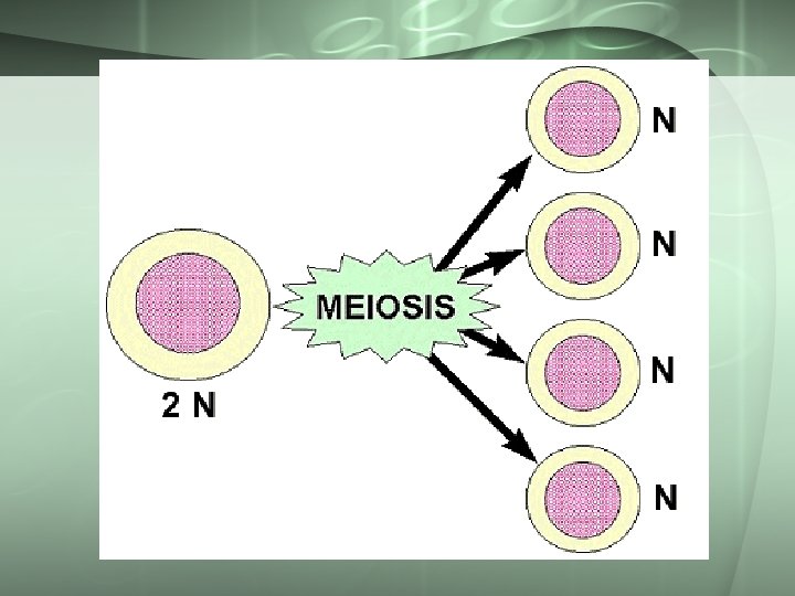 Meiosis • 1 Diploid cell 4 haploid cells • Chromosome no. is halved • Separate homologous chromosomes
