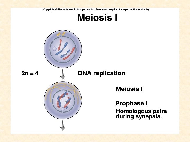 Interphase • S phase—replication • Cell is now diploid with all chromosomes being mitotic Meiosis I—reductive division • Creates 2 haploid cells with mitotic chromosomes (cut chromosome # in half • Consists of several stages