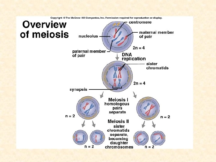 Role of Meiosis • To produce haploid gametes from diploid germ cells. • Occurs only in the gonads • Plays an important role in creating genetic variability through the processes of: