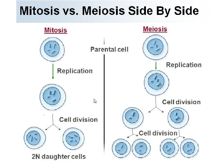 Meiosis II • No interphase II (or very short - no more DNA replication) replication • Remember: Meiosis II is similar to mitosis