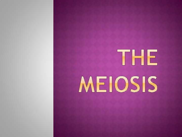 Meiosis is a special type of cell division necessary for sexual reproduction in eukaryotes such as animals, plants and fungi. The number of sets of chromosomes reduced to half the original number, typically from two sets (diploid) to one set (haploid). The cells produced by meiosis are either gametes. In many organisms gametes are called sperm and egg cells. � Meiotic division occurs in two stages, meiosis I and meiosis II. � Meiosis I: The first stage begins with a diploid cell that has two copies of each type of chromosome, one from each the mother and father, called homologous chromosomes. All homologous chromosomes pair up and may exchange genetic material with each other in a process called crossing over. Each pair then separates as two haploid cells are formed, each with one chromosome from every homologous pair. �
