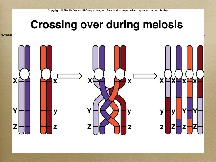 Crossing Over: why we do not look exactly like our parents. • Portions of the chromatid breaks off and attaches to adjacent chromatids on the homologous chromosome Permits the exchange of genetic material between maternal and paternal chromosomes • Occurs during Prophase
