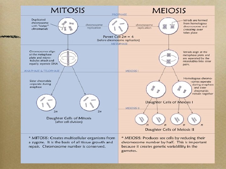 Mitosis vs. Meiosis • Mitosis: t = two: Diploid 2 n=46 • Meiosis: o = one: Haploid n = 23