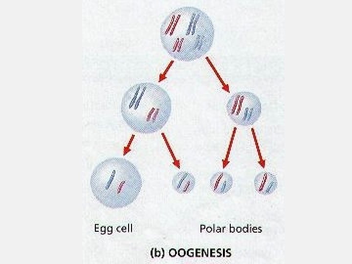 Gametogenesis - production of gametes production of ova in the ovaries Oogenesis – Meiotic division that produces 3 polar bodies and one mature ovum production of sperm in the testes Meiotic division that produces 4 sperm cells Spermatogenesis –