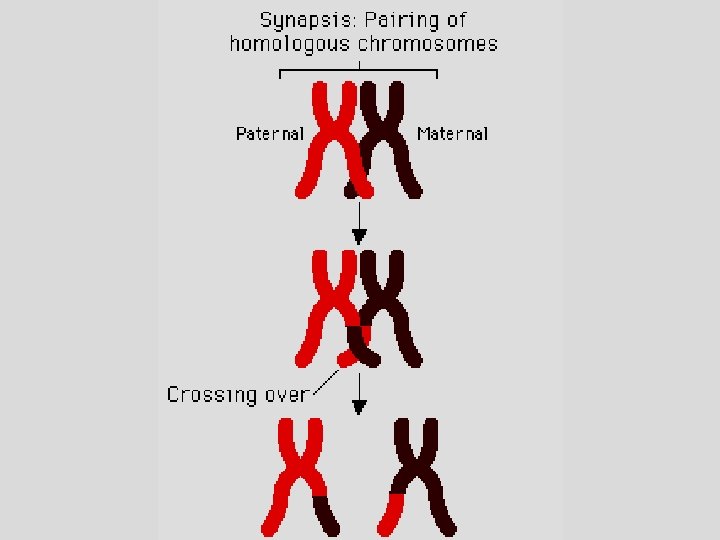 A. Prophase I 1. Each chromosome has already replicated & consists of 2 chromatids a. Synapsis results in 4 chromatids joining together to form a tetrad 2. Each chromosome lines up relatively close with its homologous chromosomes & become attached at their centromeres. This process is called SYNAPSIS. 3. while tetrads form, CROSSING OVER occurs, which is the exchange of segments between chromatids