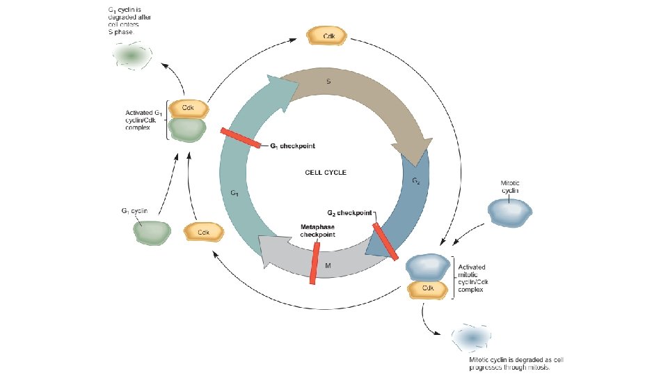 Contoh Tumor Supressor Gene menjaga integritas genom • Tumor Supressor Gene akan menghasilkan protein-protein check point • Yaitu protein yang mendeteksi terjadinya perubahan DNA sehingga akan mencegah proses pembelahan sel lebih lanjut • Pengecekan ini terjadi pada titik-titik tertentu pada fase pembelahan sel