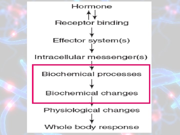 Aksi Hormon • Efek primer pada sel (ikatan hormon-reseptor spesifik) : kompleks hormon-reseptor • Kompleks hormon-reseptor sistem efektor mekanisme transduksi sinyal proses biokimia pada sel