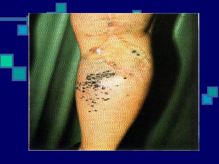 NEVO MELANOCITICO CONGENITO Entre 1 y 6% de los niños nacen con este proceso (se forman entre la 5 ta y 24 Manejo: semanas de gestación). Múltiple pigmentación, topografía irregular, superficie nodular, hipertricosis y lesiones satélites. Clasificación: Pequeños……… menos de 1, 5 cms Individualización del tratamiento. Medianos……… entre 1, 5 y 19, 9 cms Grandes………. . más de 20 cms Problemas: Seguimiento estrecho 1. - Cosméticos 2. - Psicológicos 3. - Riesgo de desarrollar melanoma (entre 4, 5 y 10%) Cirugía profiláctica - Mayor riesgo en los clasificados grandes - 70% transformación maligna antes de los 10 años - 23% de enfermedad metastásica inicial sin diagnóstico del sitio primario 2/3 de estos Melanomas son formados subepidérmicamente