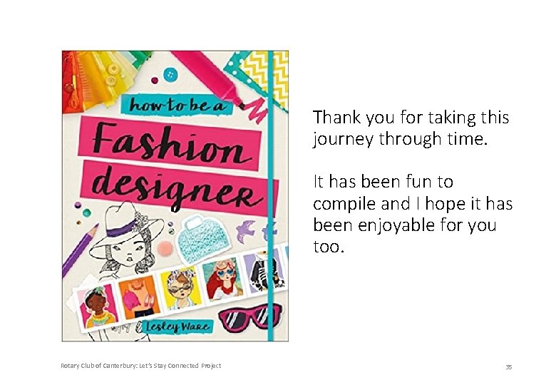 Thank you for taking this journey through time. It has been fun to compile and I hope it has been enjoyable for you too. Rotary Club of Canterbury: Let’s Stay Connected Project 35