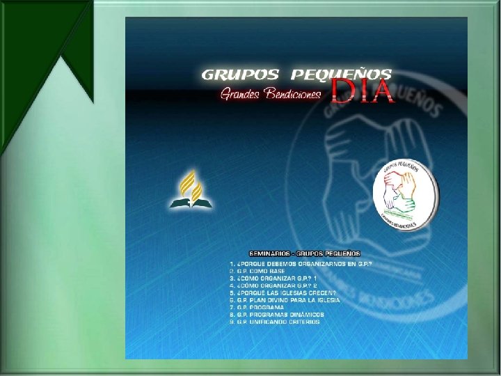 Actividades… • Orientar a que las Clases de Escuela Sabática y los Grupos de JA sean los mismos, pero tomando como base al GP. • Establecer convenios con otras divisiones en el mundo para usar el material relacionado con los GP. • Que en todos los materiales gráficos que publique la DIA, se promocione el portal de los GP.