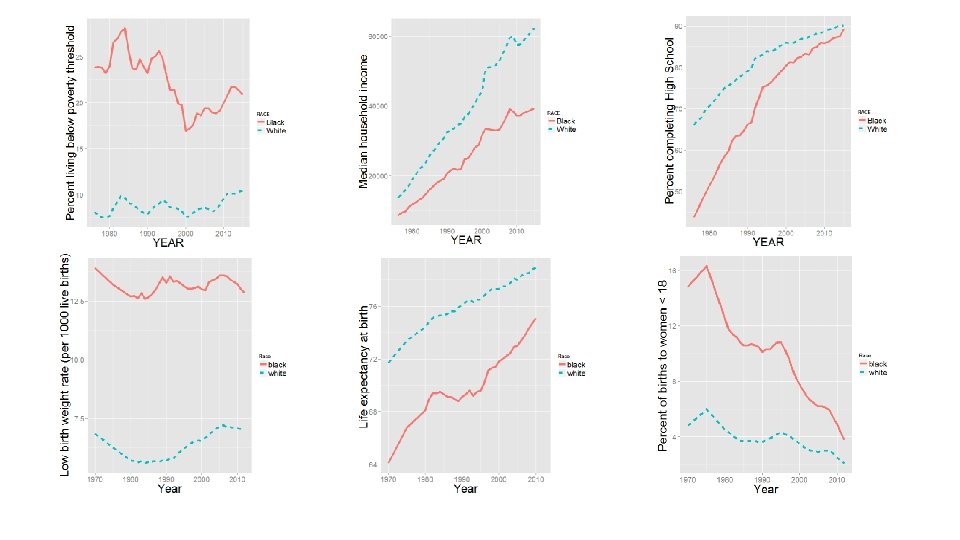Part B: Historic (longitudinal) • Graphical procedures to examine changes over time in racial disparity across: o. Poverty Rate o. Median household income o. High-school completion rate o. Low birth weight rate o. Teenage childbearing rate o. Life expectancy at birth IPUMS data from Current Population Survey Annual Social and Economic Supplement Data from National Center for Health Statistics 11