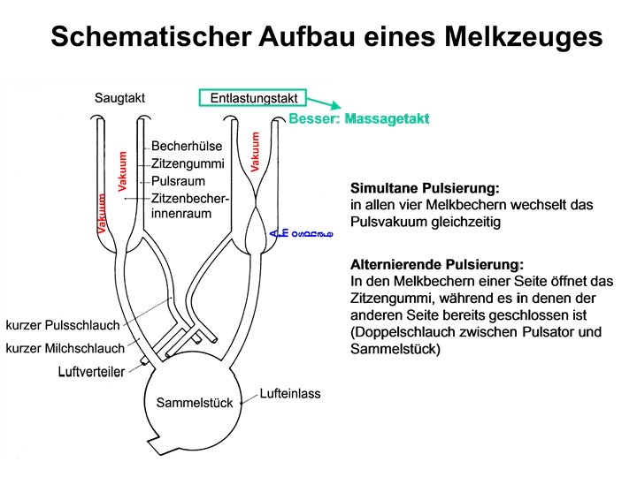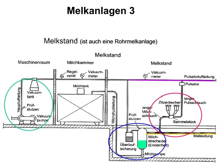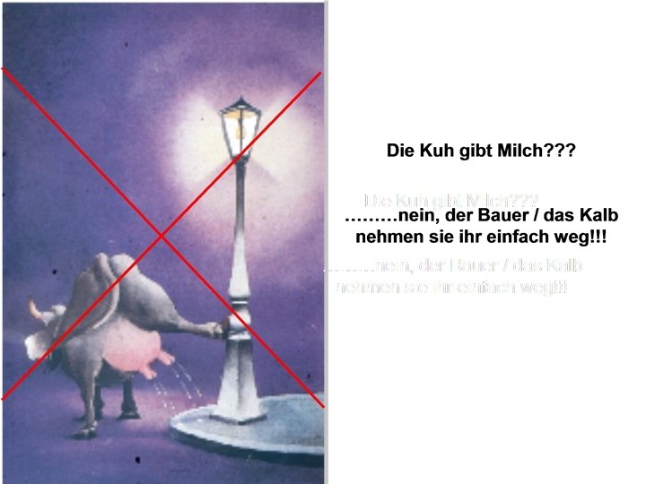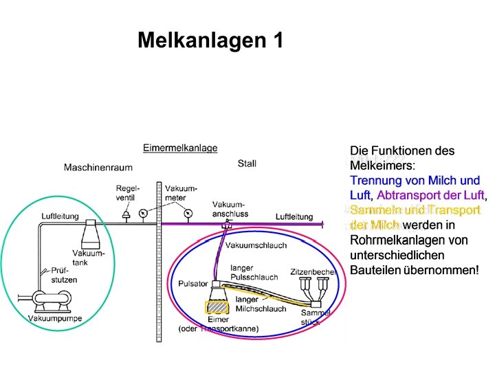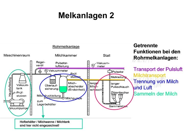 Kochendwasserreinigung 2 Milchpumpe Die Kuh gibt 3 Milch? ? ? Endeinheit 4 Milchabscheider ………nein, der Bauer / das Kalb 5 Heißwassernehmen sie ihr einfach vorratweg!!! 6 Reinigungs. Mittel (RM) sauer 7 RM-Dosierung Heißwasserbereitung