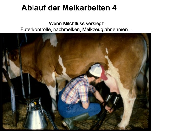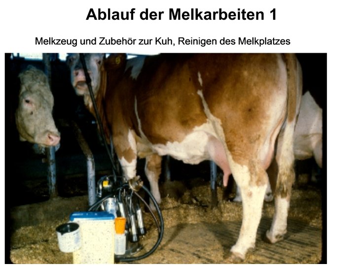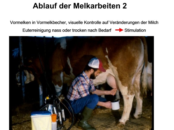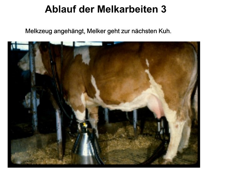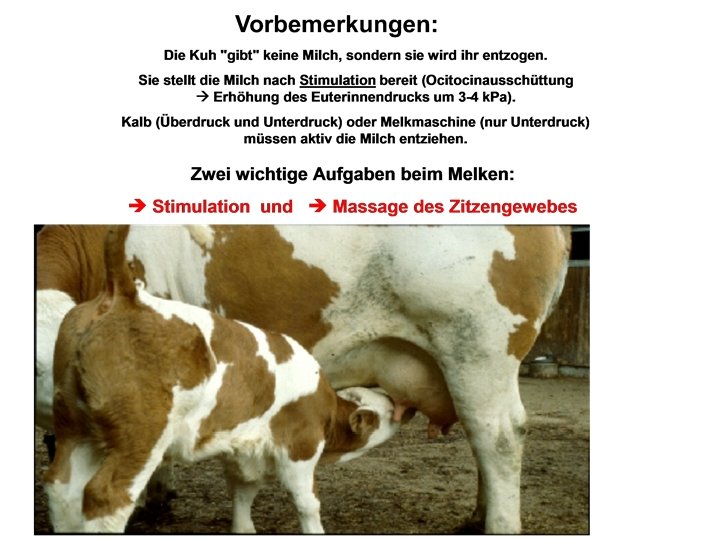 Melkstände 2 Die Stellung der Kühe zueinander beeinflusst hauptsächlich den Platzbedarf des Melkstands, die Melkarbeit (Wegezeiten des Melkers) wird nur in größeren Die Kuh gibt Milch? ? ? Melkständen deutlich verändert ………nein, der Bauer / das Kalb nehmen sie ihr einfach weg!!!