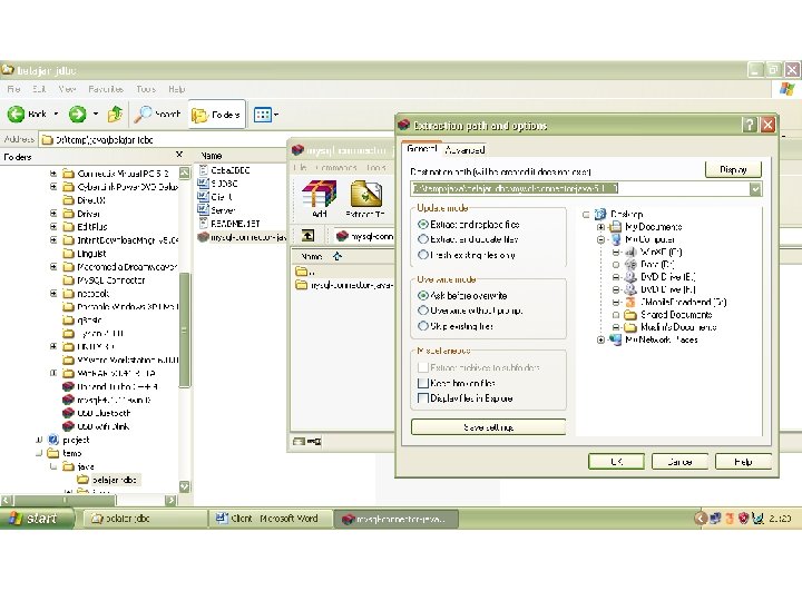 3) Driver database (connector) untuk digunakan oleh aplikasi client agar dapat terhubung ke database server. – My. Sql untuk Java (Connector/J) http: //dev. mysql. com/downloads/connector/j/ – My. Sql untuk program berbasis Windows (Connector/ODBC) – My. Sql untuk. NET (Connector/NET) – Microsoft Access & SQL Server (ODBC) 4) Aplikasi client untuk mengakses database yang berada di server.