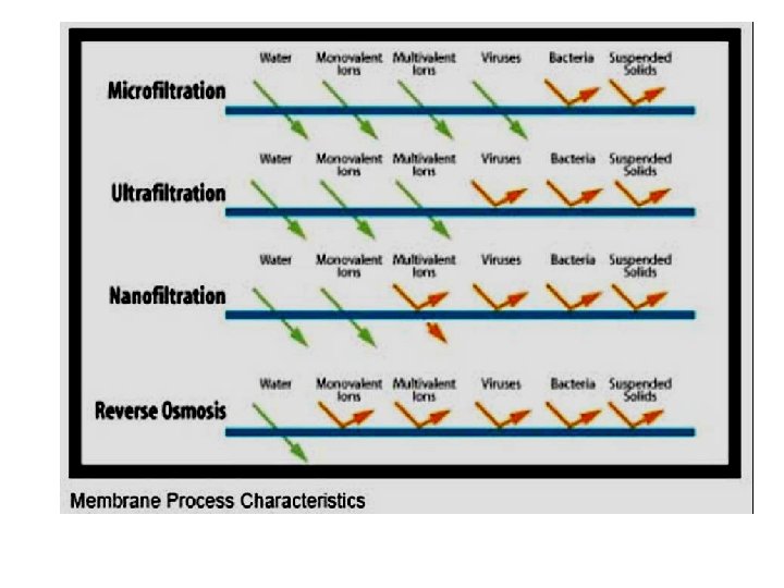 TYPES OF PROCESSES Classification according to pore size • Microfiltration • Ultrafiltration • Nanofiltration • Reverse Osmosis