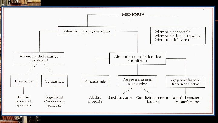 Distinzioni nella MLT Natura del materiale immagazzinato: – Semantico vs. Episodico – Dichiarativo vs. Procedurale – Esplicito vs. Implicito