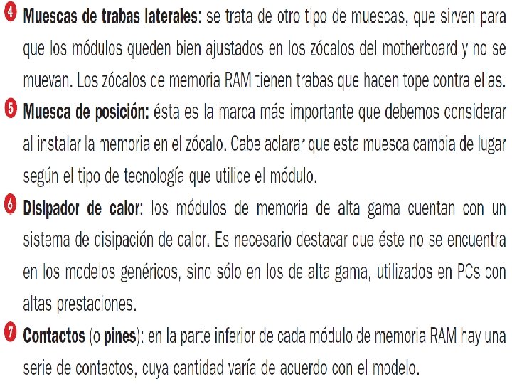MEMORIA RAM PARTES O ELEMENTOS CONCEPTOS Capacidad de