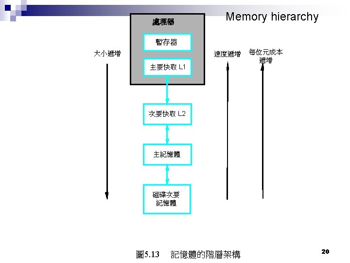 Other memory ROM n PROM n EEPROM n Flash n ¨ Low power consumption ¨ Portable system such as PDA, mobile phone, digital camera, MP 3 19