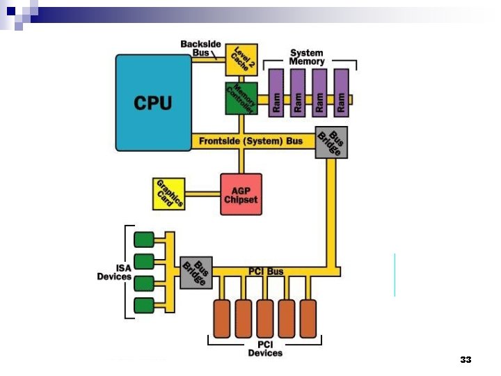 Pentium III cache n L 1 cache ¨ 16 KB data cache n n ¨ 16 KB instruction cache n n n 2 -way No write strategy due to pure code L 2 cache n n 4 -way Write-back or write-through 512 KB 4 -way Write-back or write-through Coppermine ¨ L 2 cache built in CPU n n 256 KB 8 -way 31