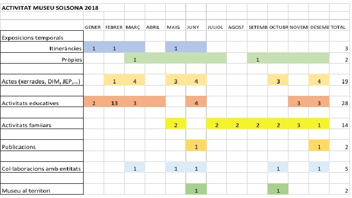 Activitats museístiques Col·leccions ○ Ingrés de diferents objectes, a destacar una col·lecció de monedes d’època medieval. ○ Documentació de material arqueològic amb l’ajuda de la Xarxa de Museus de les Terres de Lleida i Aran Finalització dels treballs de gòtic pel catàleg Tancament del Pla d’Accions del museu ○ ○ ○ Intervenció de consolidació-restauració a les pintures de Sant Quirze de Pedret