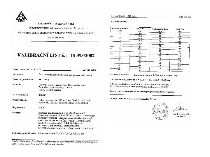 Chyby při měření délek pásmem • ze skutečné délky: není znám skutečný rozměr pásma, je třeba mít pásmo kalibrované, • z teplotní roztažnosti: se změnou teploty se mění délka pásma, u přesných měření je třeba zavádět opravu: ot = (t – t 0). α. d kde d - měřená délka, α - součinitel teplotní délkové roztažnosti, t - teplota měřidla, t 0 - teplota při kalibraci • z vybočení ze směru: přesnost zařazení mezilehlých pomocných bodů do přímky, • z nesprávného napnutí: podle pásma silou 50 N až 100 N, • z nevodorovnosti, • z průhybu: i při použití správné síly u delších pásem dojde k prověšení a je třeba zavést početní opravu, • z přiřazení: chybné čtení hodnoty.