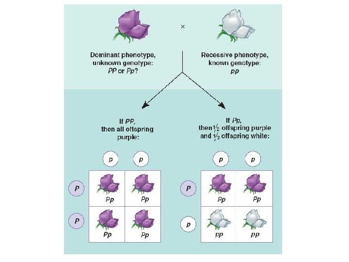 Testcross • Testcross – used to determine the genotype of a plant that has a dominant phenotype, but the scientist isn’t sure if it is homozygous dominant or heterozygous. – Crosses a homozygous recessive plant with the plant in question displaying a dominant character