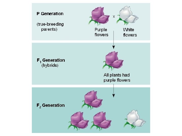 What Mendel Did • Tracked “either-or” characters, instead of “more-or-less” – Purple or white, not a lighter purple • First two plants he breeds are called the P generation (parent generation) – They yield the F 1 Generation (Filial – son). – F 1 Generation plants self-pollinating yields F 2 Generation