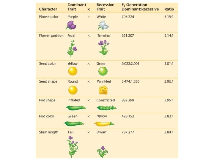 The Wonderful World of the Pea • Chosen by Mendel because it is available in many varieties – Character – heritable feature that varies among individuals (flower color) – Trait – each variant for a character (purple, white, etc. ) • Mendel could control breeding – Peas usually self-pollinate, so the only way to cross-pollinate them is to remove pollen and transfer by hand
