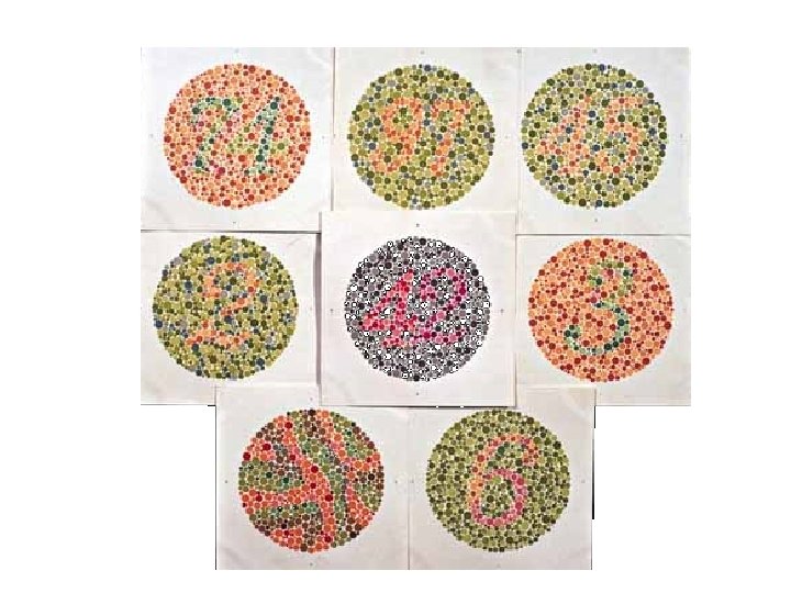 Daltonismo Consiste en la incapacidad de distinguir determinados colores, especialmente el rojo y el verde. Es un carácter regulado por un gen recesivo localizado en el segmento diferencial del cromosoma X. Los genotipos y fenotipos posibles son: MUJER HOMBRE XDXD: visión normal XD Y : visión normal XDXd: normal/portadora Xd Y : daltónico Xd. Xd: daltónica Prueba del daltonismo Esta imagen forma parte de las pruebas normales del daltonismo o ceguera para los colores. Las personas con visión normal del color ven el número 57, mientras que los daltónicos leen el 35. El daltonismo, o incapacidad para diferenciar entre el rojo y el verde y, a veces, entre el azul y el amarillo, se debe a un defecto de uno de los tres tipos de células sensibles al color de la retina. Afecta aproximadamente a una persona de cada treinta.
