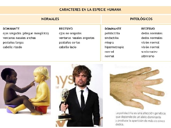 Genes que se encuentran en los cromosomas autosómicos (22), se transmiten igual en hombres que en mujeres. Los alelos pueden ser D o R: Alteraciones debidas a alelos dominantes (polidactília) Alteraciones debidas a alelos recesivos (albinismo) Aa Pp pp A P Pp Aa p a A a p pp AA Aa Aa aa