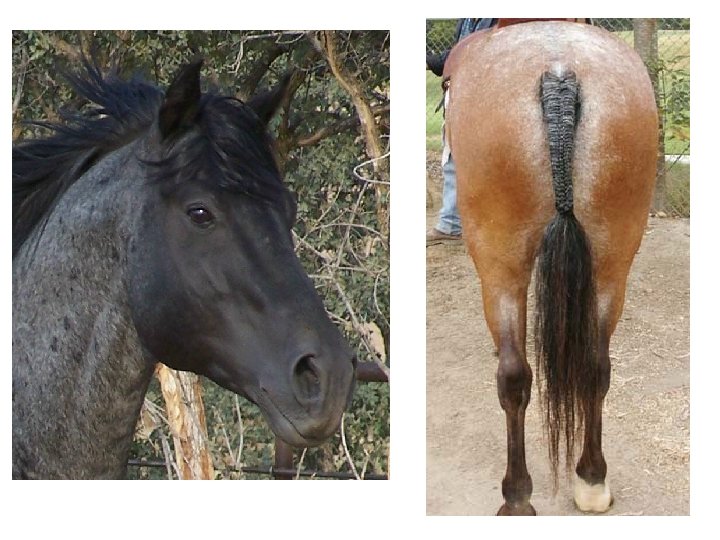 Codominance—Roan color horse-Red and white hairs! Red Roan Black and white hairs! Blue Roan