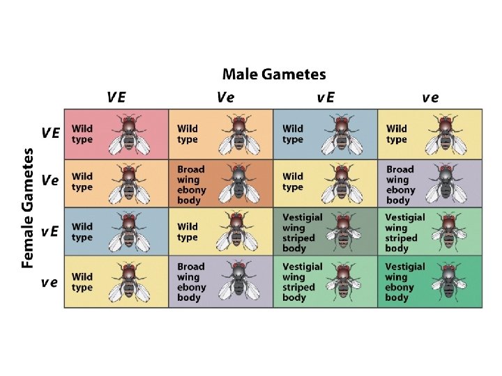 • Can use the inheritance of traits in fruit flies to illustrate the law of independent assortment. • Dihybrid cross – A fertilization in which the parents differ in two distinct traits or characteristics.