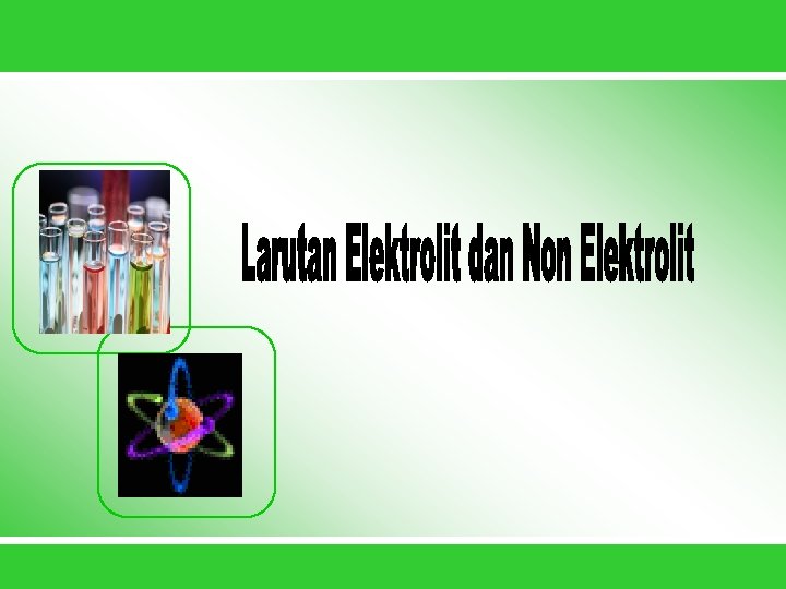 Elektrolit dapat berupa: 1. Senyawa ion (antara atom logam dengan non logam) Contoh: Na. Cl, Na. OH, Mg. Br 2, KF 2. Senyawa kovalen polar (antara atom non logam dengan non logam Contoh: HCl, HF, NH 4 OH, CH 3 COOH