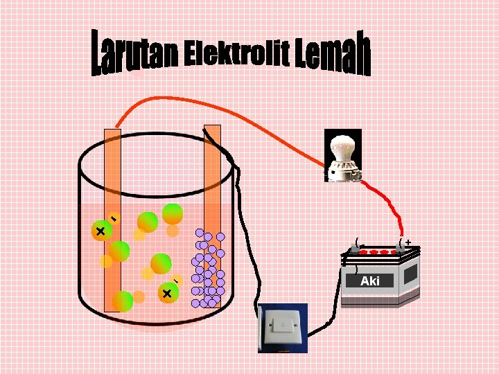 Kemampuan suatu laruan untuk menghantarkan listrik dapat diamati dengan menggunakan alat uji elektrolit () Aki (+ )