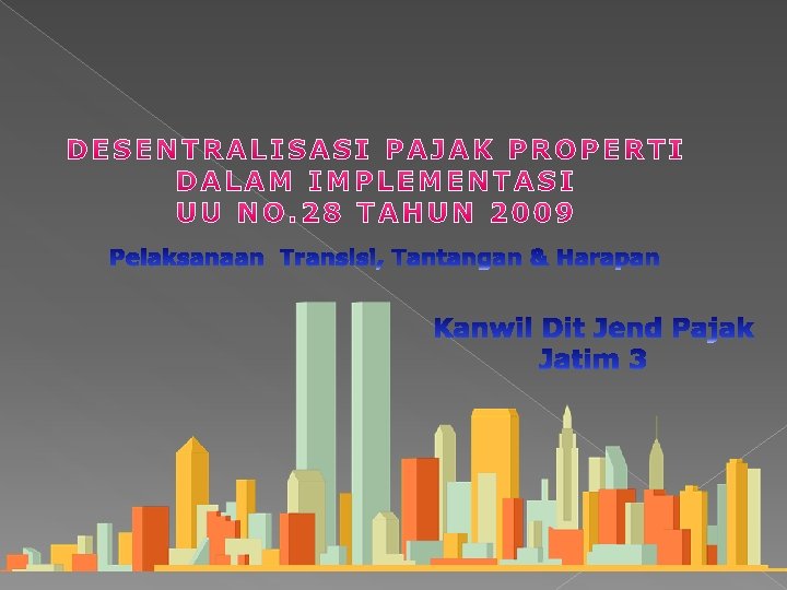 PERSIAPAN TERKAIT PEMBERLAKUAN PAJAK PROPERTI (PBB dan BPHTB) menjadi PAJAK DAERAH Terkait dengan berlakunya UU PDRD maka hal-hal yang harus dipersiapkan antara lain : Eksternal pemerintah daerah › UU yang mendasari › Peraturan pelaksanaan (PP, Surat Keputusan Bersama, dll) › Transfer wawasan (pelatihan, IHT, dll) Internal pemerintah derah › › Peraturan daerah dan peraturan pelaksanaan Peralatan Personil Pembiayaan