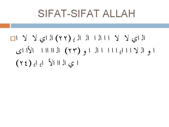 Maha Mengetahui ﺍﻟ Maha Pengasih ﺍﻟ ﻳ Maha Penyayang ﺍ Maha Menguasai ﺍ ﻭ Maha Suci ﺍﻟ ﻻ Maha Penyelamat ﺍ Maha Pemberi Aman ﺍ Maha Pemelihara ﺍ