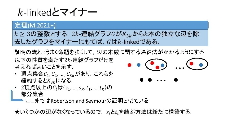 定理(Robertson and Seymour, 1990) 定理(Chen, Gould, Kawarabayashi, Pfender, and Wei, 2005) 定理(M, 2021+)