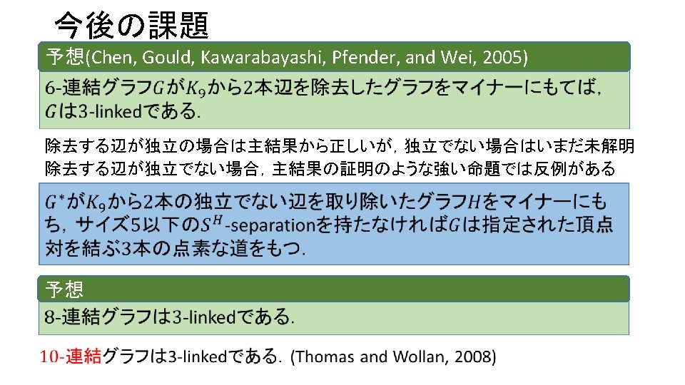 まとめ 予想 予想(Chen, Gould, Kawarabayashi, Pfender, and Wei, 2005)