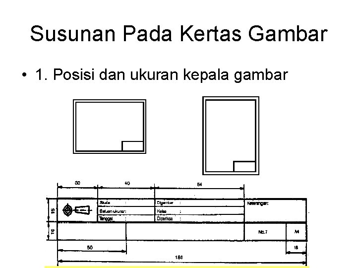 Susunan Pada Kertas Gambar • 1. Posisi dan ukuran kepala gambar