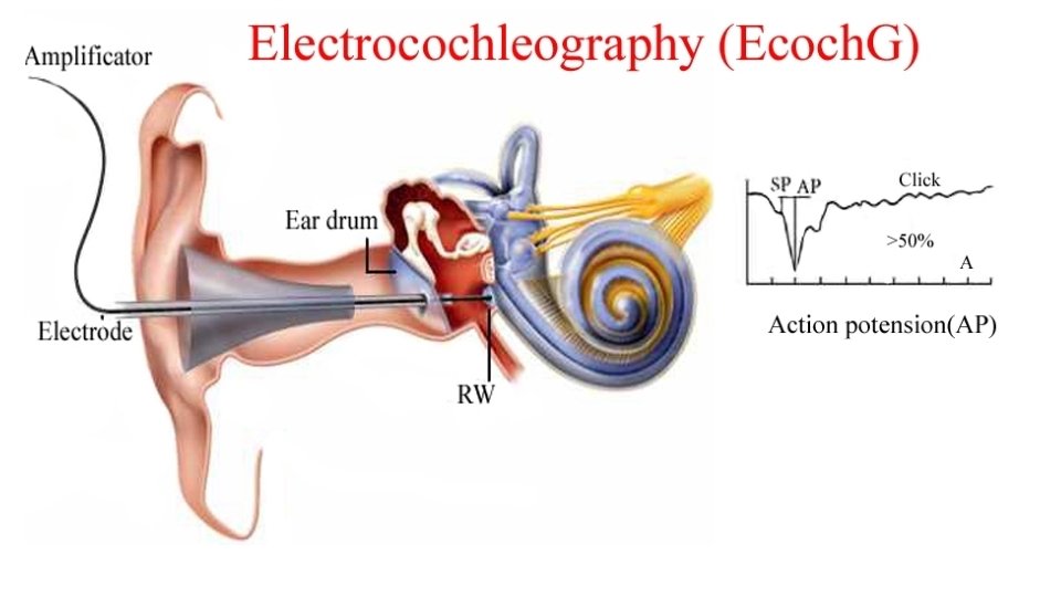 • Vestibular Evoked Myopotentials -generated by playing loud clicks in the ear, which move the stapes footplate and stimulate the saccule -disynaptic pathway that passes through the vestibular nuclei and then to synapses that relax the sternocleomastoid muscle