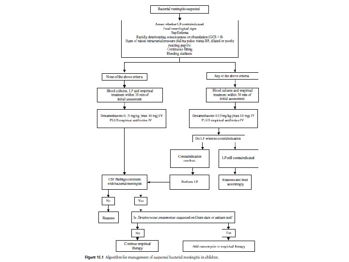 MENINGITIS BACTERIANA Coadyuvantes en el tratamiento? • Cochrane Database Syst Rev. 2003; (3): CD 004305. Los corticoides son beneficos en el tratamiento de niños con meningitis bacteriana aguda. • Chaudhuri A. Lancet Neurol. 2004 Jan; 3(1): 54 -62. • Pickering LK, ed. Red Book: 2003 Report of the Committee on Infectious Diseases. 26 th ed. Elk Grove Village, IL: American Academy of Pediatrics. 2003: 293, 493.