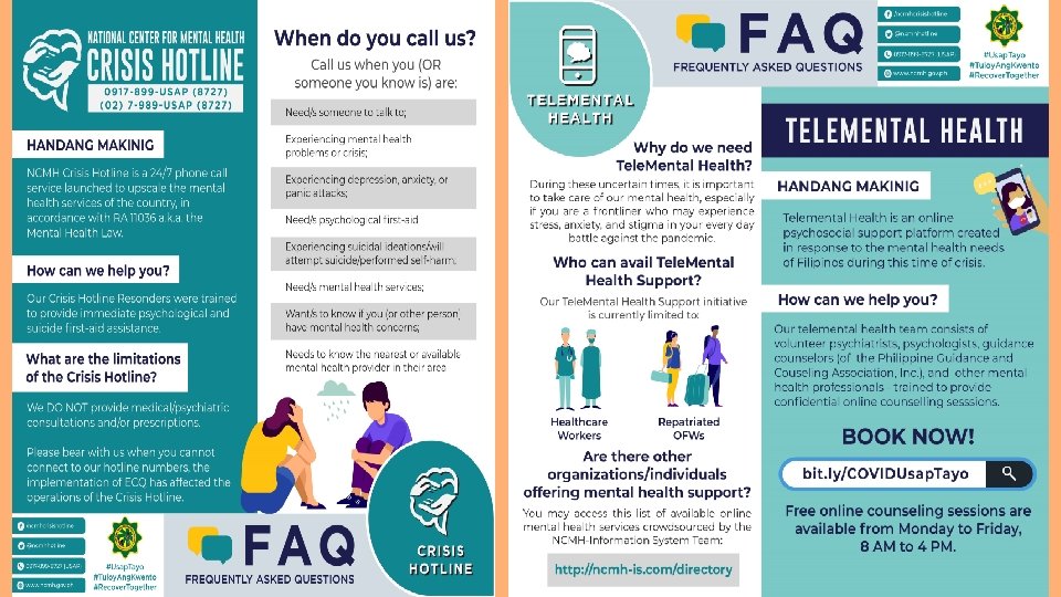 the National Center for Mental Health has observed a spike in the number of Filipinos suffering from mental health conditions since the lockdown. from 60 -80 calls monthly before the COVID-19 lockdowns, the NCMH now receives 300 to 400 calls per month, mostly from people who suffer from anxiety and depression.