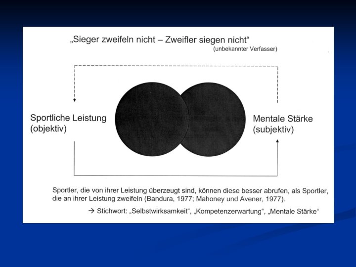 Realistische Selbsteinschätzung Mentale Stärke entsteht aus der genauen Kenntnis der eigenen Leistung („Leistungswahrnehmung“) Die realistische Selbsteinschätzung kann mit Vorhersagen trainiert werden („Vorhersagekompetenz“)