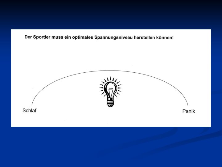 Warum werden trotzdem viele Sportler im Wettkampf so nervös, dass sie weit hinter ihrer Trainingsleistung zurückbleiben? n n Keine ausreichende Gewöhnung an die Wettkampfsituation Keine klaren Handlungspläne im Kopf n Technik, n Wettkampfablauf, n Pausengestaltung, n kritische Situationen Unzureichende Erholung Der eigene Selbstwert wird an das Wettkampfergebnis gekoppelt