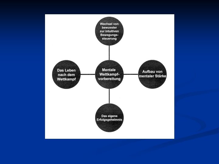 Ziel des Mentalen Trainings Abrufen der optimalen Leistung im WK n Nutzen weiterer Ressourcen zusätzlich zum Training n Beschleunigung der Leistungsoptimierung n Vermeiden bzw. Lösen von Blockaden n Training nach Verletzung n