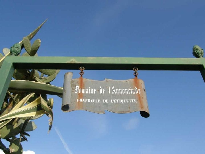 La Confrérie de l’Etiquette sur les hauteurs de l’Annonciade. A proximité du monastère se trouve un vignoble de 800 pieds de vigne. De là un paysage magnifique situé au sommet de la ville de Menton. Ce paysage, inchangé depuis des siècles avait tellement impressionné au Moyen Age, que des moines s’y étaient installés, pour y créer un sanctuaire de méditations