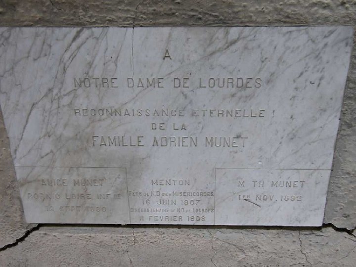la villa La Vierge (24, rue des Sœurs Munet), dans le quartier de la gare, héberge une réplique exacte de la grotte de Lourdes. Elle fut construite en remerciement pour la guérison miraculeuse de l'une des Sœurs Munet, anciennes propriétaires du lieu. La bâtisse est aujourd'hui la demeure des Sœurs missionnaires catéchistes du Sacré-Cœur. Les Sœurs Munet qui ont donné leur nom à la rue, ont quitté Lyon pour le doux climat de Menton en 1890. Elles y achètent une belle maison qu’elles baptisent «La Villa de la Vierge» où elles feront construire dans le jardin, en remerciement de la guérison miraculeuse d’Alice, une réplique de la Vierge dans la grotte de Lourdes. Cette statue, particulièrement bien conservée, est visible dès le deuxième étage de la Villa Mélanie.
