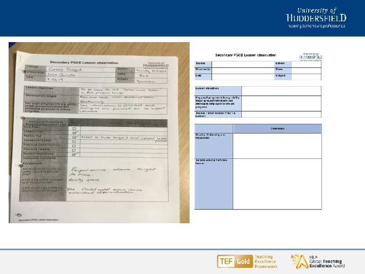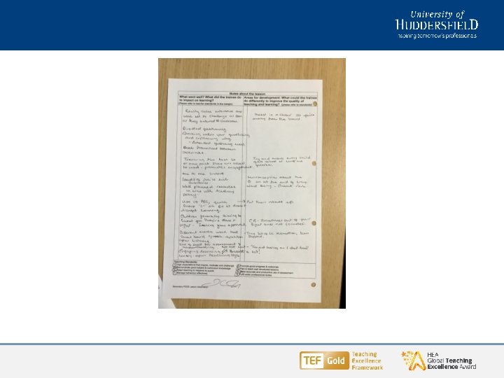 We aim to develop teachers who: Holistic understanding of the role of a teacher autonomous, confident professionals, University of Huddersfield Trainee Teacher Use inclusive teaching techniques and philosophies Are engaging practitioners Are reflective and critical thinking Use evidence based pedagogy Strong subject and curriculum knowledge