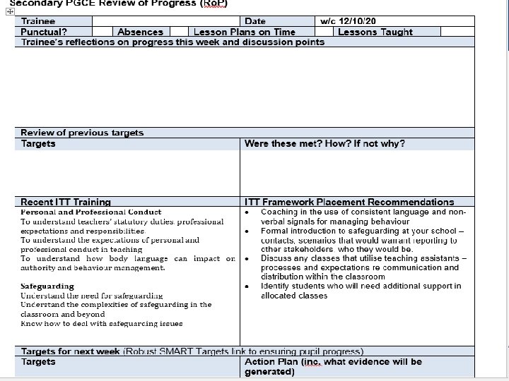 Observation of Other Practitioners • Some targets are best addressed by having the opportunity to observe a range of colleagues in practice • Can be undertaken during the trainee’s Professional Development (PD) time. • Once a model of good practice has been identified by the mentor it is the trainee’s responsibility to follow up and arrange such opportunities.